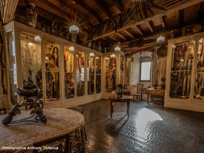 Le château cache un trésor inattendu : la collection de Léon Marès. Cet érudit passionné a rassemblé au XIXe siècle des objets venus d’Europe, d’Afrique et d’Asie. Parmi les pièces les plus marquantes :