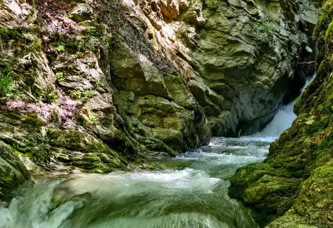 Quelques minutes plus bas, un sentier raide descend vers le torrent du Chinaillon. Là, une gorge sculptée par l’eau dévoile toute la puissance de ce site sauvage. L’accès peut être boueux : de bonnes chaussures sont donc indispensables.