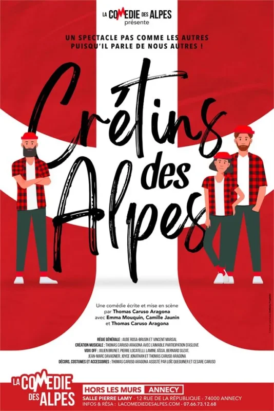 Les trois comédiens survoltés de cette comédie bien de chez nous incarnent tour à tour des montagnards, un moniteur de ski, des guides de haute montagne, un berger, un groupe de chasseurs, des policiers mais aussi des parisiens qui débarquent dans nos montagnes pour le meilleur et … pour le rire !