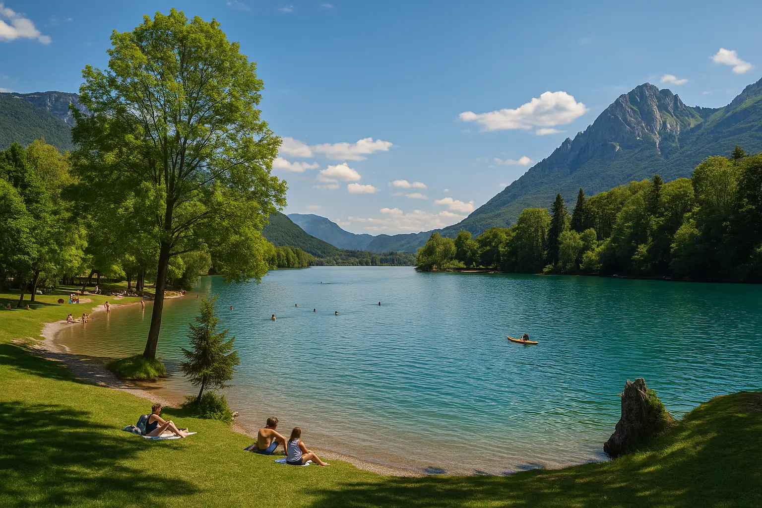 Renowned for the clarity of its waters, Lake Annecy has many supervised beaches in summer. In Annecy-le-Vieux (Albigny), there is a large grassy area and a marked swimming area; in Saint-Jorioz, the gentle slope is perfect for children. Further south, Doussard offers a peaceful setting with paddle and canoe rentals.