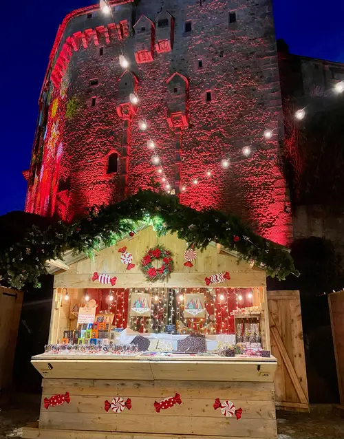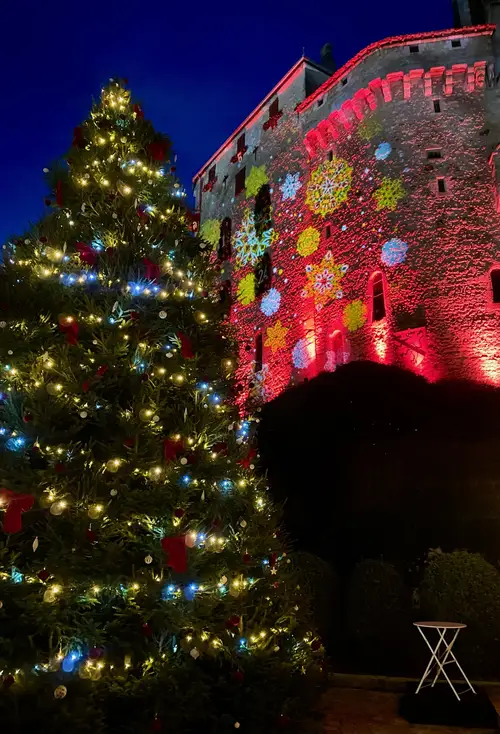 The medieval architecture of the castle, its turrets and large vaulted rooms perfectly suit the Christmas atmosphere. But when the first decorations appear, the place completely transforms: