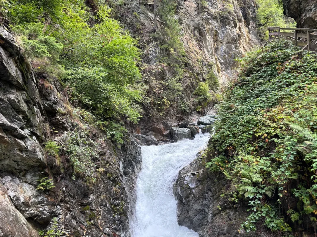 💡 Conseil pratique : L’accès au parcours aménagé est payant en saison. C’est une sortie idéale avec des enfants dès le plus jeune âge pour la partie sécurisée. Après la pluie, les passerelles peuvent devenir humides et glissantes : mieux vaut prévoir de bonnes chaussures fermées. Grâce à la proximité de la gare de Servoz, la visite se combine facilement avec une journée sans voiture dans la vallée de Chamonix.