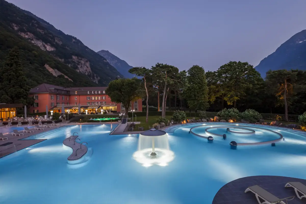 Les bains de Lavey possèdent l’eau la plus chaude de Suisse. Sa source atteint 65°C. Elle est ensuite refroidie à 33-36°C pour les bassins. Cette température idéale procure une relaxation profonde instantanée.