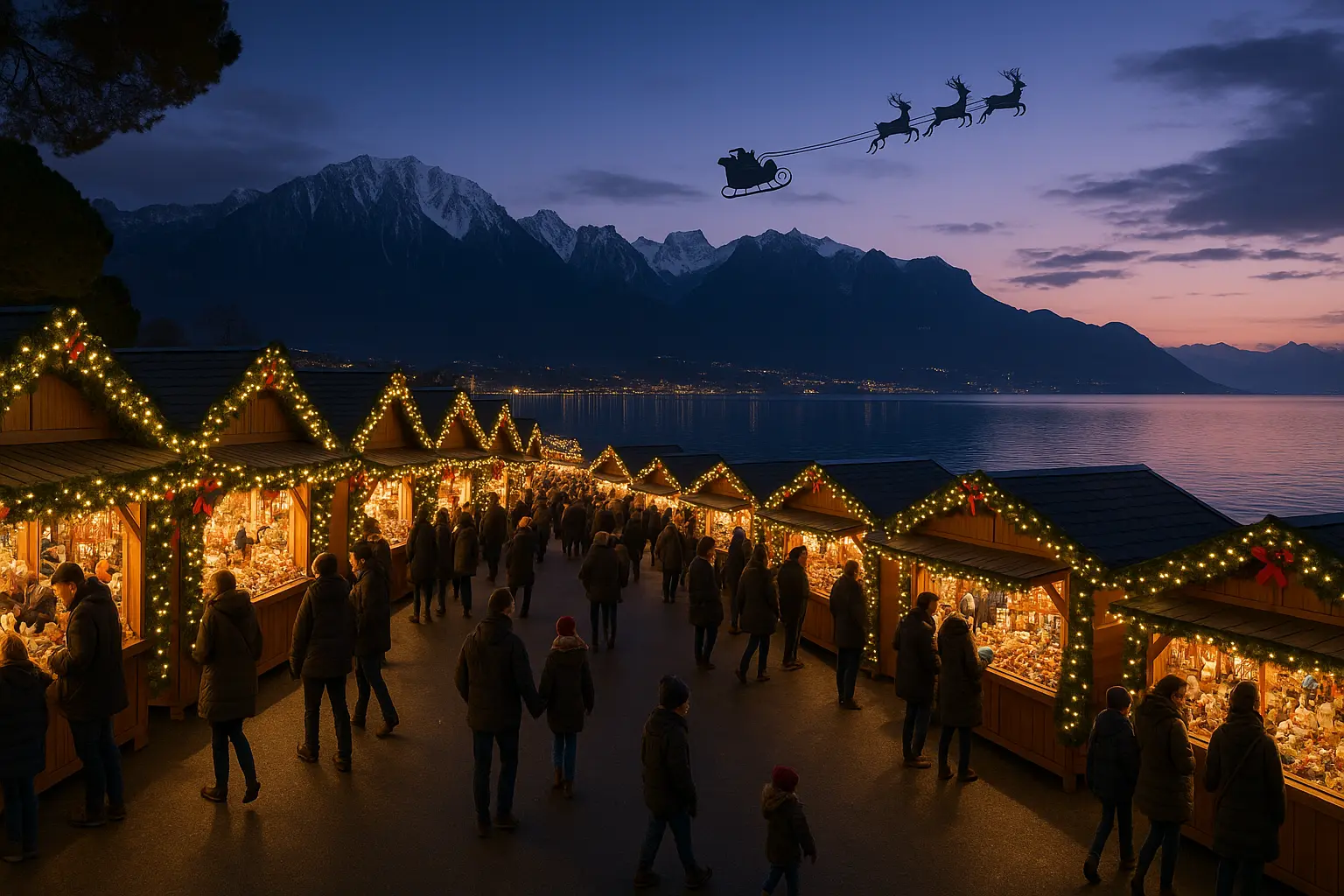Montreux sublime Noël : lac Léman, Alpes et 170 chalets illuminés. Le Père Noël volant, la gastronomie suisse et l’ambiance festive créent une magie unique. Cette destination de Noël inoubliable vous attend. Explorez aussi marchés de Noël de Haute-Savoie pour prolonger la féerie.
